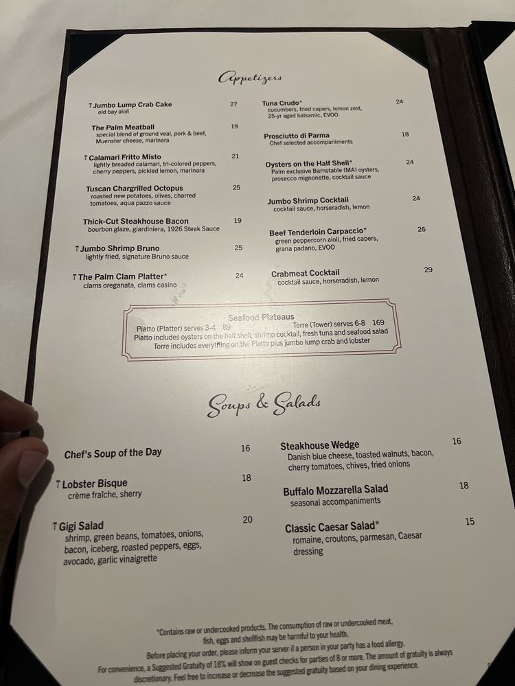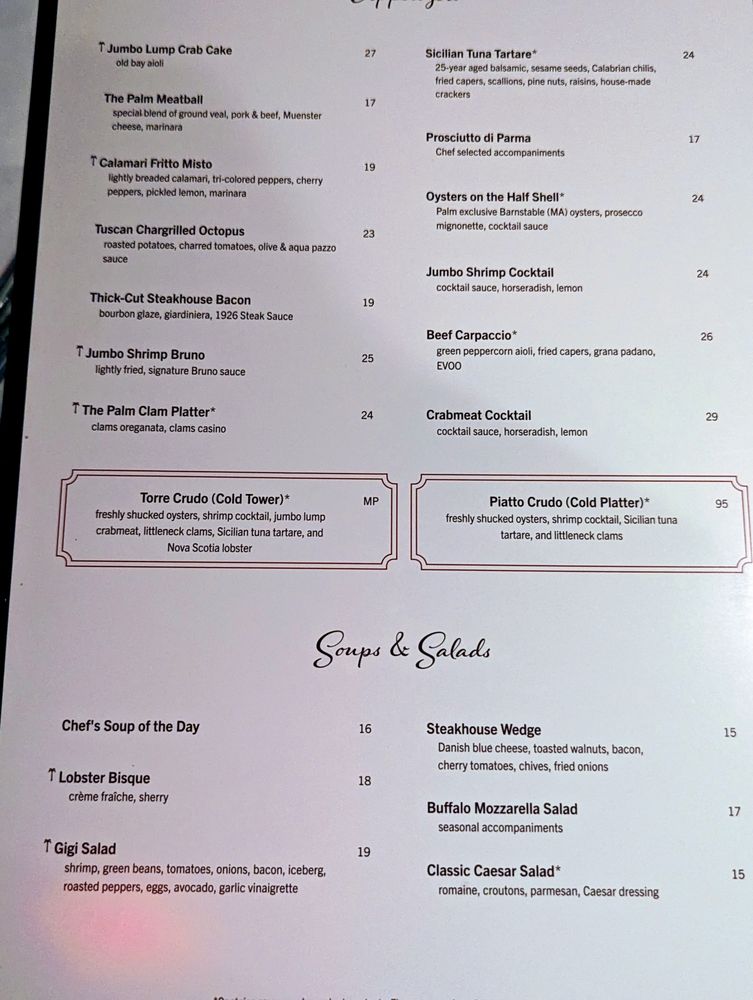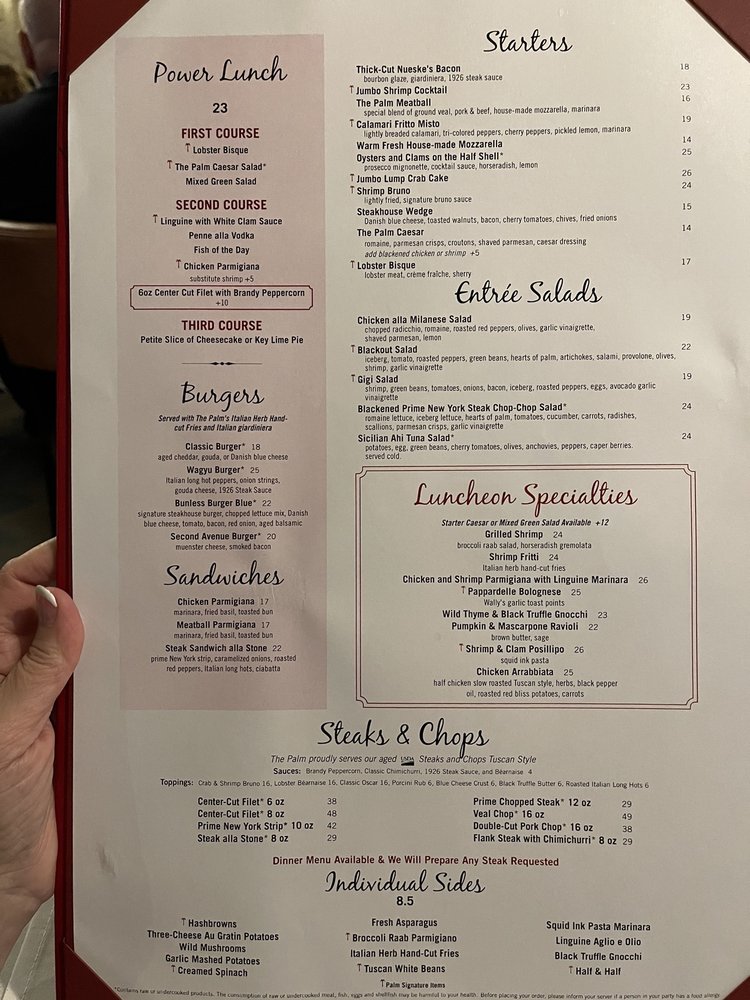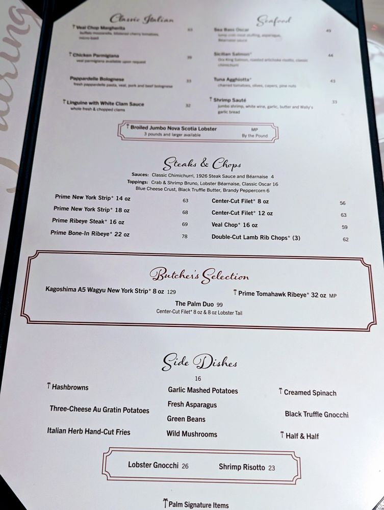 The Palm proudly serves aged USDA Prime beef, corn-fed, hand selected and aged a minimum of 35 days.